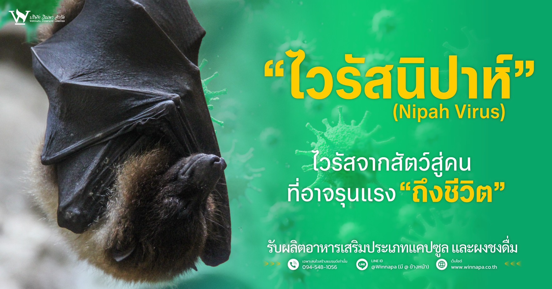 ไวรัสนิปาห์ (Nipah virus) เป็นหนึ่งในไวรัสที่องค์การอนามัยโลกจัดให้อยู่ในกลุ่มโรคที่ต้องเฝ้าระวังสูง แม้จะพบการระบาดไม่บ่อย แต่เป็นโรคที่มีอัตราการเสียชีวิตสูง และยังไม่มียารักษาเฉพาะหรือวัคซีนป้องกันโดยตรงวันนี้ วิณพา จะพาทุกคนไปทำความรู้จักไวรัสนิปาห์ตั้งแต่แหล่งที่มา วิธีการติดต่อ อาการ ไปจนถึงแนวทางป้องกัน เพื่อให้รู้เท่าทัน และลดความเสี่ยงในชีวิตประจำวันกันค่ะ